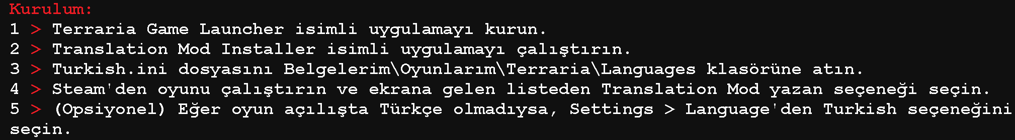 hocam olmuyor cmd den hata kodu veriyor ayrıca not defterinde yazan terraria dosyasında languange klasörü yok dalga mı geçiyosunuz
