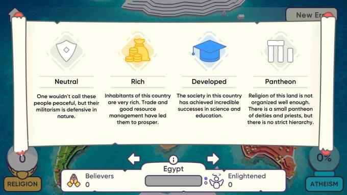 PC simülasyon ve strateji oyunudur. Dünyada birçok din içermekte ve bu dinler hakkında yeterli bilgi sahibi olacaksınız. Oyunda mevcut olan mücizeleri görün ve insanlara bu mücizelerden bahsederek kanıtlayın. Zamana meydan okuyarak bu süreçte yeni yol izleyin ve oluşan sorunların cevaplarını bulun.